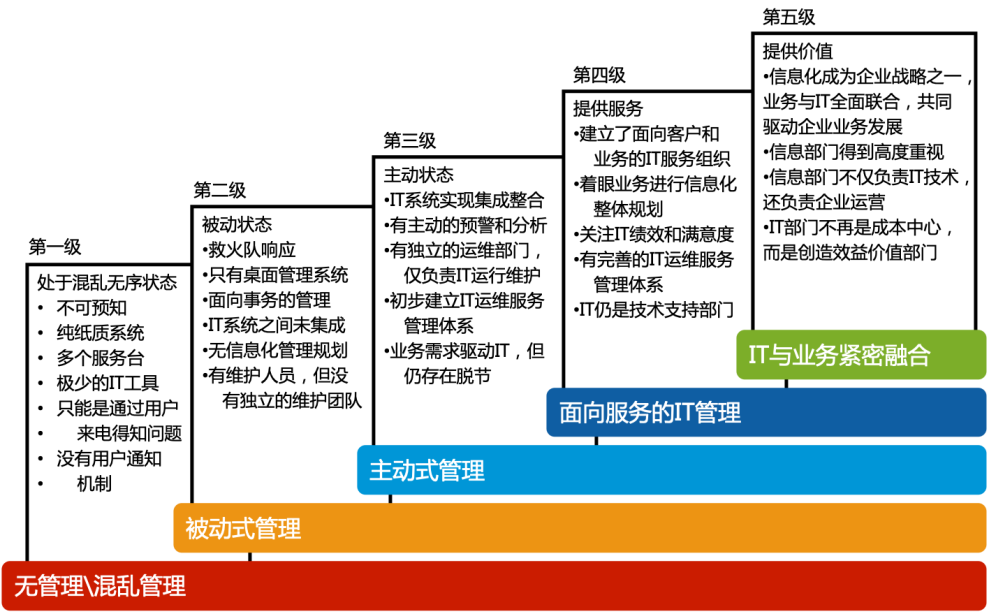 信息化日新月異的時代,云計算、大數據等熱門技術的發展和普及,企業對IT運維的重視程度只增不減,不單局限于軟硬件維護、故障排除以保證IT系統正常運行,更重視的是快速處理能力和用戶滿意度,因此企業通常采用ITSM流程系統將IT服務所需要的所有工具串聯起來,在服務過程中多方人員密切溝通,通過信息化手段遠程實時解決故障,并且做到服務過程的精細化管理,以此提高終端用戶的感知度和滿意度。IT運維作為IT整體運營的一部分,是企業實現信息化管理的重中之重。
