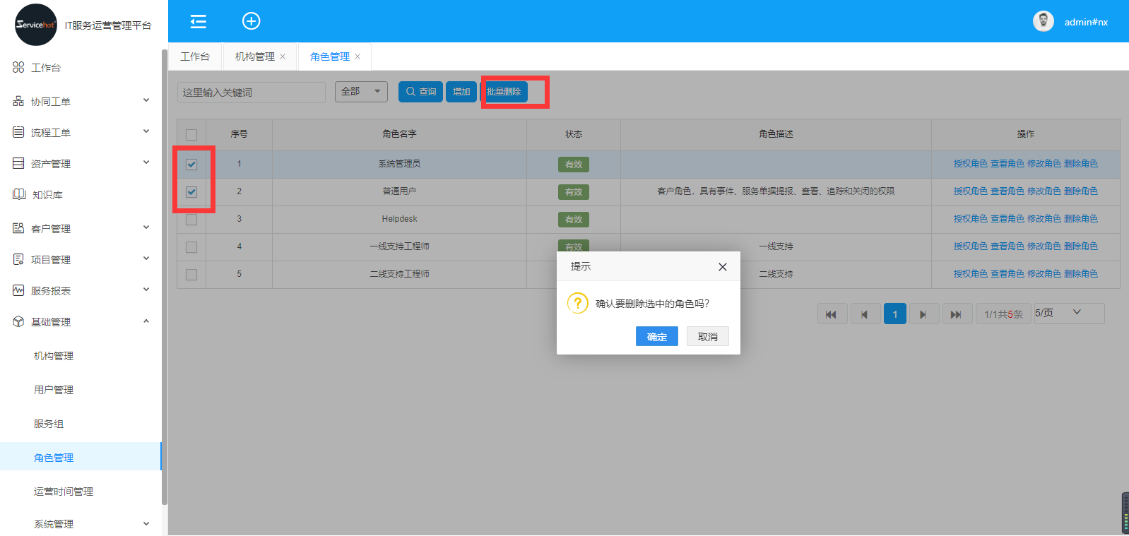 刪除或批量刪除角色;
