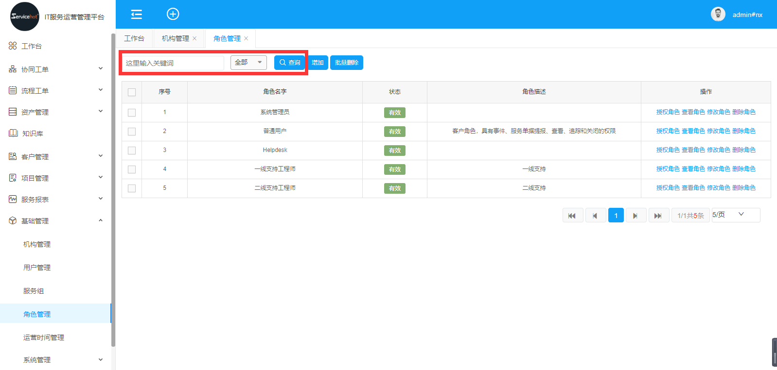 選擇「基礎管理」>>「角色管理」進入如下圖新增角色界面;
