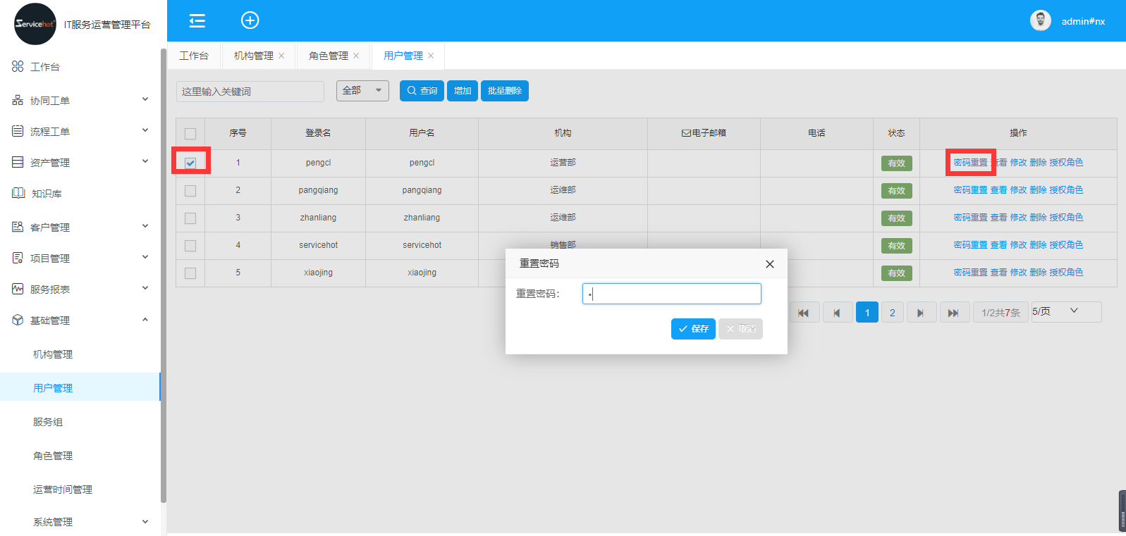 用戶密碼重置;